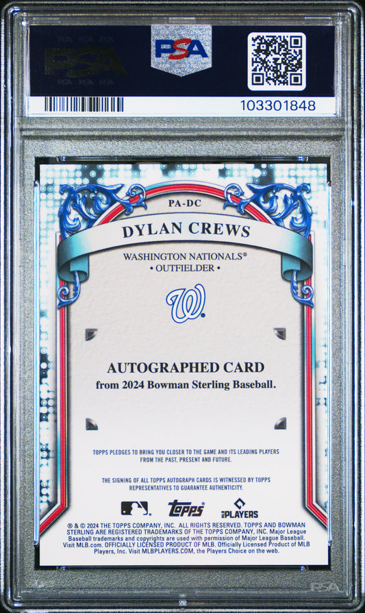 2024 Bowman Sterling Prospect Autographs Dylan Crews Blue Scintillate /25 PSA 10